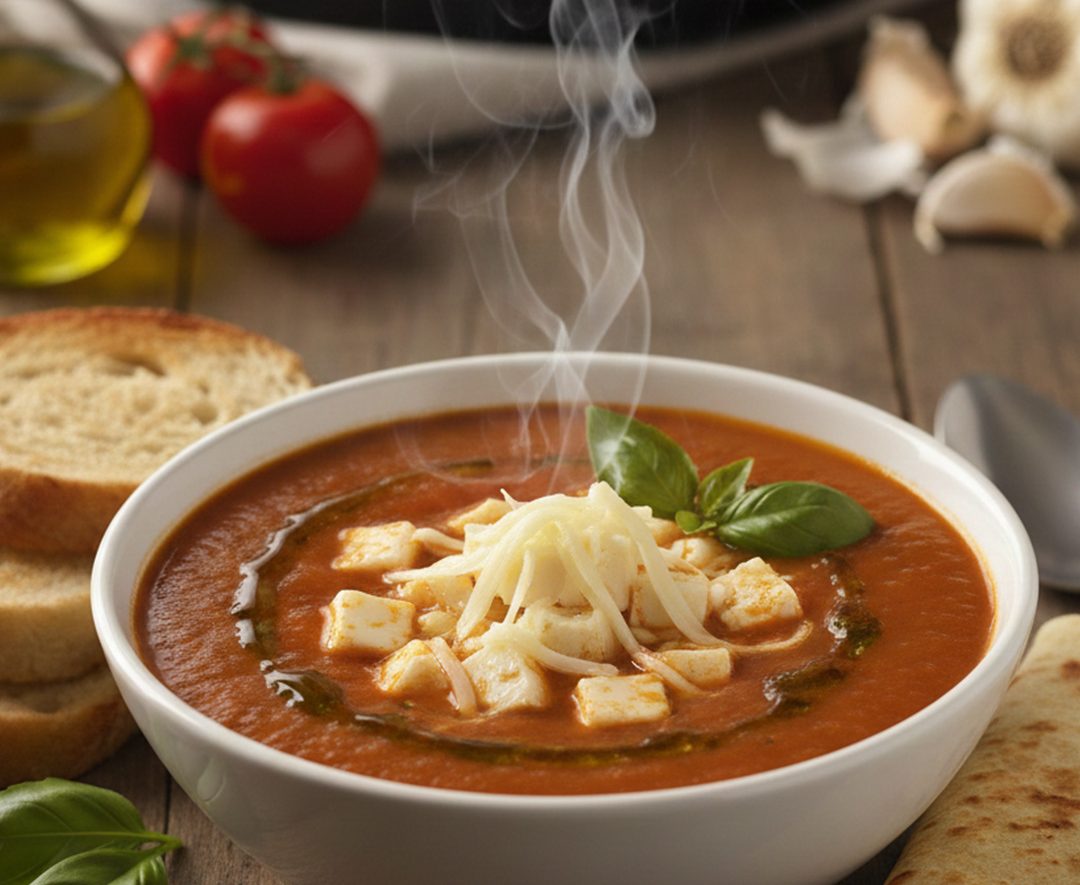 Sopa de Tomate Rostizado con Queso Chihuahua o Menonita